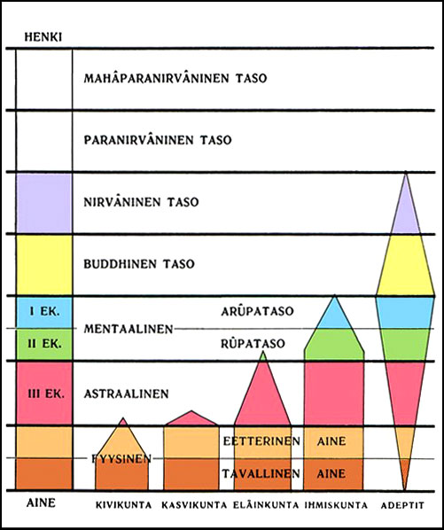 IHMINEN NÄKYVÄISENÄ JA NÄKYMÄTTÖMÄNÄEsimerkkejä eri ihmistyypeistä nähtynä harjaantuneen selvänäön avulla Kirjoittanut C. W. LEADBEATER SUOMENTANUT J. T. SUOMEN TEOSOFINEN SEURA1927[Sanojen kirjoitusasua nykyaikaistettu]SISÄLLYS Kuvaluettelo I Miten näistä asioista saadaan tietoa XII Mitä ihmisen ruumiit ilmaisevat KUVALUETTELO 4. Kehityksen alas- ja ylöspäinen kaari 6. Villi-ihmisen mentaaliruumis 7. Villi-ihmisen astraaliruumis 8. Tavallisen ihmisen syyruumis 9. Tavallisen ihmisen mentaaliruumis 10. Tavallisen ihmisen astraaliruumis 11. Rakkauden äkillinen puuska 12. Uskonnollisen hartauden puuska 15. Rakastuneen ihmisen astraaliruumis 16. Ärtyisän ihmisen astraaliruumis 18. Masentuneen ihmisen astraaliruumis 21. Kehittyneen ihmisen syyruumis 22. Kehittyneen ihmisen mentaaliruumis 23. Kehittyneen ihmisen astraaliruumis 25. Sairaan ihmisen terveysaura